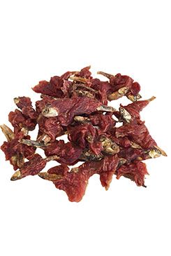 Složení: 80% kachna, 9,5% ryba, 2,8% škrob, 4,3% glycerin, 3,4% rost. protein, 1% hrubá vláknina, 16% vlhkost