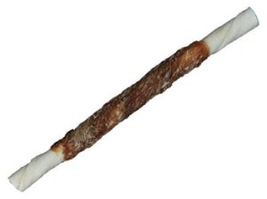 Žvýkací tyčinka pro psy z hovězí kůže obalená kachními prsíčky. Podávejte jako pamlsek nebo odměnu. Udržuje zdravé zuby a svěží dech. Žvýkáním si pes posiluje žvýkací svaly a zároveň se zabaví na dlouhou dobu.