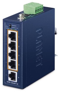 PLANET ISW-504PT-E Kompaktní průmyslový 5portový switch s podporou PoE+ pro náročné průmyslové prostředí.