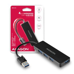 AXAGON HUE-G1C; Kompaktní rozbočovač připojí k počítači s rozhraním USB-C až čtyři USB zařízení současně ....