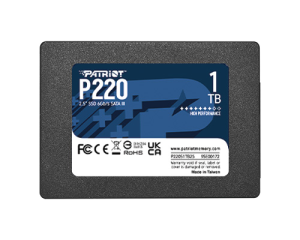 Model: PATRIOT P220 Provedení: 2.5” SSD Kapacita: 1 TB Rozhraní: SATA III 6 Gb/s Rychlost čtení: 550 MB/s Rychlost zápisu: 500 MB/s Rozměry: 27 x 1,5 x 39 mm (ŠxVxH) Hmotnost: 46g Záruka: 3 roky