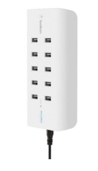 10 x 2.4A USB-A ports 120W external power supply output Intelligent charging delivers correct power to each device Surge protection