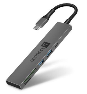 CONNECT IT CompactPRO USB-C hub + čtečka karet, (2xUSB-A 3.0, 1xUSB-C), externí, ANTRACITOVÝ