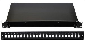19" Optická vana 24xSC černá V sestavě jsou dvě kazety pro 12 vláken.