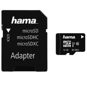 MicroSD paměťová karta, kapacita 16 GB, maximální přenosová rychlost 80 MB/s, adaptér součástí balení, Class 10, UHS-1.