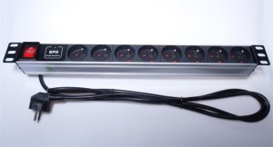 Panel napájecí do 19" racku, 9x230V, 2m kabel - provedení z eloxovaného hliníku - horizontální pro montáž do 19" Racku - výška 1,5U - 9x 230V zásuvka - maximální proud: 16A - UTE zásuvky (klasické zásuvky …