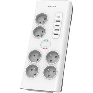 Přepěťová ochrana Philips SPN7060WA/60, bílá, 2m * integrované pohodlí * 6 zásuvek AC FR * 1x Type C + 4 x Type A USB * maximální výkon 3680 W * 900J přepěťová ochrana * délka kabelu 2 m * kabelové opletení …