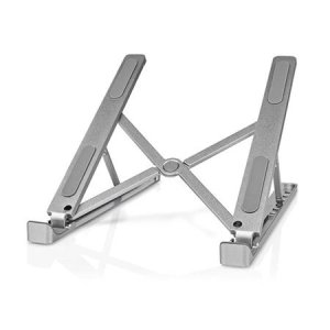Nedis NBSTND100SI; Přenosný podstavec pro notebooky a tablety s úhlopříčkou až 17" umožňuje nastavení úhlu sklonu a výšky v šesti stupních, čím pomáhá udržovat správné držení těla a redukovat tak napětí …
