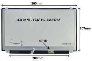 Náhradní díl LCD panel 15,6" HD 1366x768 v matném provedení. Úhlopříčka: 15,6" Rozlišení: 1366x768 HD Konektor: 40 PIN Typ podsvícení: LED Povrch LCD panelu: MATNÝ Technologie LCD panelu: TN Rozměry: …