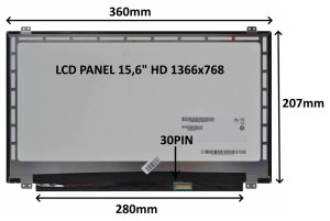 Náhradní díl LCD panel 15,6" HD 1366x768 v matném provedení. Úhlopříčka: 15,6" Rozlišení: 1366x768 HD Konektor: 30 PIN Typ podsvícení: LED Povrch LCD panelu: MATNÝ Technologie LCD panelu: TN Rozměry: …