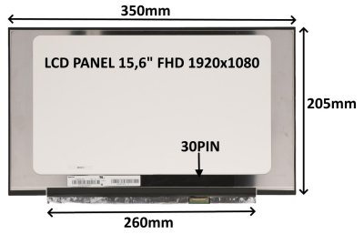 Náhradní díl LCD panel 15,6" FHD 1920x1080 v matném provedení. Úhlopříčka: 15,6" Rozlišení: 1920x1080 FHD Konektor: 30 PIN Typ podsvícení: LED Povrch LCD panelu: MATNÝ Technologie LCD panelu: TN Rozměry: …