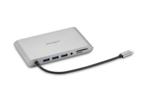 Malá kovová USB-C dokovací stanice s připojením až 3 monitorů.