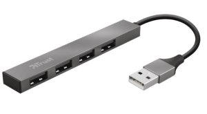 USB hub Trust Halyx Aluminium 4-Port Mini 4× USB-A port s přenosovou rychlostí až 480 Mbps Délka kabelu 10 cm Vhodný pro cestování a připojení více zařízení Hliníkové provedení Barva: šedá Rozměry: 94 …