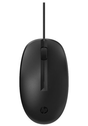 Kabelová myš HP 125 s ergonomickým designem a optickým snímačem.