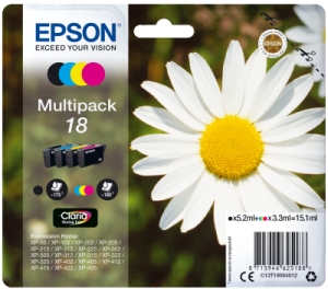 Inkoust Epson Claria Home je univerzální čtyřbarevný zásobník inkoustu, díky kterému vznikají ostré, dobře čitelné textové dokumenty a lesklé fotografie jako z laboratoře.