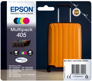 Originální cartridge Epson 405 Barva: Multipack, barva černá/azurová/purpurová/žlutá (black/cyan/magenta/yellow) Výtěžnost: černá 350 stran, barvy 300 stran Obsah? černá 7,6 ml, barvy 5,4 ml Pro tiskárny: …