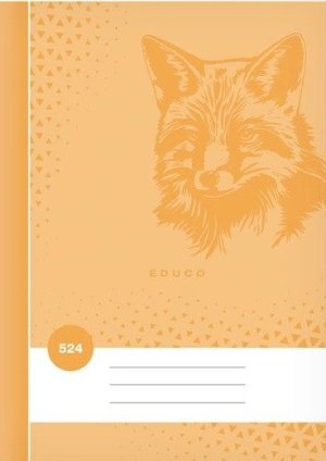 Školní linkovaný sešit ve formátu A5, v oranžové barvě, s motivem lišky, v deskách z křídového papíru.