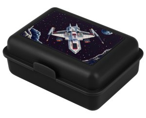 • Plastový box na svačinu v černé barvě. • Box má uzavírání na jeden zámek a dělicí přepážku. • Nedoporučujeme mýt v myčce.