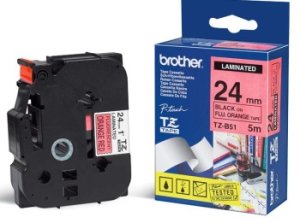 Originální kazeta s páskou Brother TZe-B51 - černý tisk na fluorescenční oranžové, šířka 24 mm Originální kazeta Brother TZe-B51 s černým tiskem na fluorescenčním oranžovém podkladu je perfektní pro …