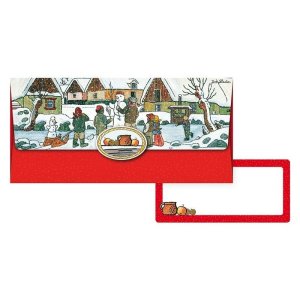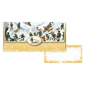 Dárková obálka na peníze s vánočními motivy Josefa Lady a uzavíratelnou klopou.