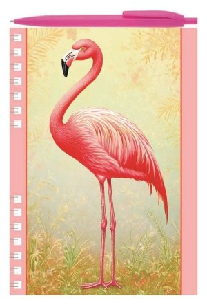 Poznámkový blok čistý, bez linek, v pastelově růžové barvě, s motivem plameňáka a zaoblenými rohy.