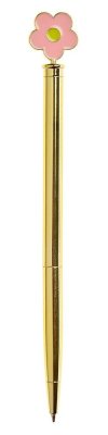 Luxusní kovové pero ve zlaté barvě s roztomilým motivem květiny na koncovce.