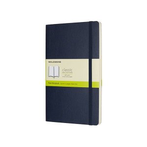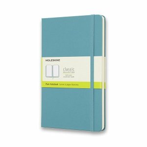 Zápisník s měkkou, ve hřbetu šitou vazbou v kartonových deskách, obepnutý pružnou páskou proti samovolnému otevírání.