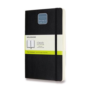 Více stran pro delší příběhy. ,Zápisník s pevnou, ve hřbetu šitou vazbou v kartonových deskách, obepnutý pružnou páskou proti samovolnému otevírání.