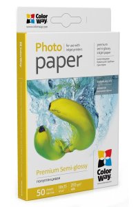 ColorWay Premium Semi-Glossy 10×15 cm 50 ks; Prémiový pololesklý fotopapír formátu 10 × 15 cm pro inkoustové tiskárny.