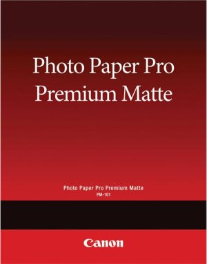 Canon Pro Premium Matte PM-101 Elegantní matný fotografický papír s hladkým povrchem Hladká struktura s teplým bílým odstínem poskytující výtisky bez lesku.