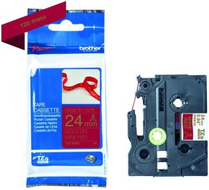 Originální kazeta Brother TZe-RW34 - zlatá na vínově červené, šířka 12 mm Využijte své tvořivosti a vytvořte originální dárky pomocí originální pásky Brother TZe-RW34.