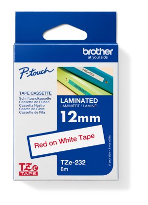 Originální kazeta s páskou Brother TZe-232 - červený tisk na bílé, šířka 12 mm Originální kazeta s laminovanou páskou TZe-232 kompatibilní s širokou řadou tiskáren Brother P-touch je zvláště všestranná …