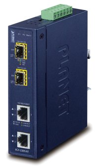 PLANET IGT-2205AT; Průmyslový konvertor Ethernet RJ-45 10/100/1000 Base-T na optiku 100/1G/2.5G Base-X se sloty SPF pro instalaci opt. modulů (série MFB a MGB).