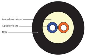 Univerzální optický kabel konstrukce DROP s LSZH pláštěm a singlemode vlákny.