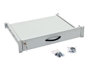 Triton, RAB-UP-X29-A1 Výsuvná uzamykatelná 19´´ police 2U pro klávesnici a myš, uzamykatelná, hloubka zasunuté police je 371,5 mm Příbal: montážní materiálbarva: černáilustrační obrázek