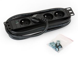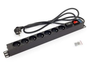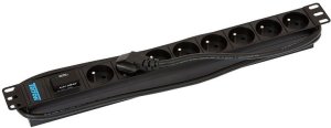 19" rozvodný panel Triton je vybavený 7 zásuvkami podle ČSN, 2 metrovým kabelem s univerzální zástrčkou, podsvíceným vypínačem s bezpečnostním krytem a varistorovou bleskojistkou.