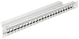 19" patchpanel pro 24 modulů SFA/SFB, neosazený, 1U,RAL 7035 Parametry patchpanelu: * Šířka: 483,00mm * Výška: 44,00mm * Hloubka: 91,00mm * Váha: 0,75kg * SCHRACK Formát: SFA, SFB * Instalace: 19'' …