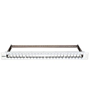 19" patchpanel pro max. 24 keystone,neosazený,1U,RAL 7035 Parametry patchpanelu: * Šířka: 483,00mm * Výška: 45,00mm * Hloubka: 152,00mm * Váha: 0,70kg * SCHRACK Formát: SFA, SFB * Instalace: 19'' * …