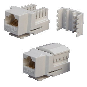 UTP Keystone Cat.5e bílý (Dual-mini) - horní zářez - s krytkou - nestíněný UTP keystone cat.5e - barva bílá - zářezové pole typu DUAL (110 i LSA)