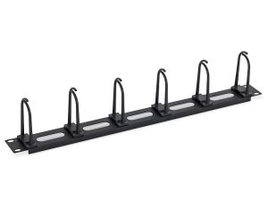 Vyvazovací panel pro organizaci kabelů pro 19" rack, 6x plastová úchytka velká, černá.