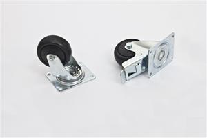Sada koleček pro rozměrné a těžké stojanové racky, obsahuje 2 těžkotonážní kolečka s brzdou a 2 bez brzdy, 16 šroubů M5 x 12 s hlavou Thorx a 16 velkloplošných podložek.