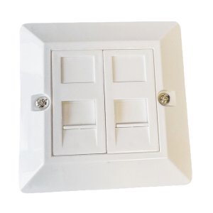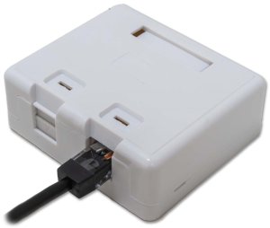 UTP dvojzásuvka nad omítku 45 st.- Cat 5e - zásuvka je určená pro montáž "na omítku" - 2 x RJ45 pod úhlem 45 stupňů - nestíněné porty - zářezové pole typu LSA - cat.5e - barva bílá