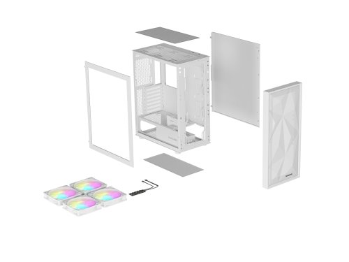 Typ skříně: Midi Tower Formát základní desky: ATX Micro-ATX Mini-ITX Kompatibilní standardní napájecí zdroj: ATX Montáž napájecího zdroje: Spodní část Maximální délka zdroje napájení: 215 mm Maximální výška chlazení CPU: 168 mm Maximální délka grafické karty GPU: 351 mm I/O panel: Mini jack x2 USB 3.0 Typ-A x2 USB 3.1 Gen2 Typ-C x1 Typ bočního panelu: Tvrzené sklo Typ předního panelu: Síťka Počet instalovaných ventilátorů: 4 Instalované ventilátory: Přední 3x 120 mm Zadní 1x 120 mm Maximální počet ventilátorů: 8 Podpora pro instalaci ventilátorů - spodní část: 2x 120 mm Podpora pro instalaci ventilátorů - horní část: 2x 120 mm 2x 140 mm Podpěra pro instalaci ventilátorů - přední strana: 3x 120 mm 3x 140 mm Podpora pro instalaci ventilátorů - zadní část: 1x 120 mm Rychlost otáčení ventilátorů +/-10 %: 1200 otáček za minutu Životnost ventilátoru: 50000 h Průtok vzduchu ventilátorem: 43 CFM Statický tlak ventilátoru: 0,95 mmH2O Hlučnost ventilátoru: 21,6 dB Podpora kapalinového chlazení: Ano Podpora instalace kapalinového chlazení - horní část: 120 mm 140 mm 240 mm 280 mm Podpěra pro instalaci kapalinového chlazení - přední část: 120 mm 140 mm 240 mm 280 mm 360 mm 420 mm Podpěra pro instalaci kapalinového chlazení - vzadu: 120 mm Podsvícení: ANO Barva podsvícení: ARGB Součásti podsvícení: Ventilátory Možnost ovládání RGB pomocí základní desky: 2+1 pin 5V ARGB Asrock Polychrome Sync 2+1 pin 5V ARGB Asus Aura Sync 2+1 pin 5V ARGB Gigabyte RGB Fusion 2.0 MSI (Mystic Light and others compatible) Počet rozšiřujících slotů: 7 Počet pozic pro disky 2,5" (SSD/HDD): 3 Počet 3,5" pozic pro disky (SSD/HDD): 2 Kryt zdroje napájení: Ano Napájecí zdroj je součástí dodávky: Ne Ochrany: Magnetické prachové filtry Materiál: ABS, Ocel, Tvrzené sklo Barva: Bílá Délka: 420 mm Šířka: 217 mm Výška: 466 mm Hmotnost: 7,1 kg Dodávané příslušenství: Uživatelská příručka Sada montážních prvků