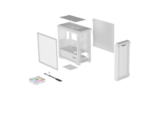 Typ skříně: Mini Tower Formát základní desky: Micro-ATX, Mini-ITX Kompatibilní napájecí zdroj standard: ATX Montáž napájecího zdroje: Spodní část Maximální délka zdroje: 190 mm Maximální výška chlazení procesoru: 163 mm Maximální délka grafické karty: 375 mm I/O panel: Mini Jack x2 USB 2.0 Typ-A x2 USB 3.0 Typ-A x1 Typ bočního panelu: Tvrzené sklo Typ předního panelu: Síťovina Počet instalovaných ventilátorů: 1 Instalované ventilátory Vzadu: 1x 120 mm ARGB Maximální počet ventilátorů: 6 Podpora pro instalaci ventilátorů - horní: 2x 140 mm, 2x 120 mm Podpora pro instalaci ventilátorů - přední: 2x 140 mm, 3x 120 mm Podpora pro instalaci ventilátorů - zadní: 1x 120 mm Rychlost otáčení ventilátorů: +/-10 % 1300 ot. Životnost ventilátoru: 40000 h Průtok vzduchu ventilátoru: 46,10 CFM Statický tlak ventilátoru: 0,97 mmH2O Řídicí jednotka ventilátoru: Ano Podpora kapalinového chlazení: Ano Podpora instalace kapalinového chlazení - horní: 240 mm 120 mm 140 mm 280 mm Podpora instalace kapalinového chlazení - přední část: 240 mm 120 mm 280 mm 140 mm Podpěra pro instalaci kapalinového chlazení - zadní: 120 mm Podsvícení: Ano Barva podsvícení: ARGB Součásti podsvícení: Ventilátor Počet režimů podsvícení: 1 Možnost ovládání RGB pomocí základní desky: 2+1 pin 5V ARGB Asrock Polychrome Sync 2+1 pin 5V ARGB Asus Aura Sync 2+1 pin 5V ARGB Gigabyte RGB Fusion 2.0 MSI (Mystic Light a další kompatibilní) Počet rozšiřujících slotů: 5 Počet pozic pro disky: 2,5" (SSD/HDD) 3 Počet 3,5" pozic pro disky: (SSD/HDD) 2 Kryt zdroje napájení: Ano Dodávaný napájecí zdroj: Ne Ochrana: Protiprachové filtry Magnetické prachové filtry Materiál: Ocel, Tvrzené sklo, ABS Barva: bílá Délka: 430 mm Šířka: 210 mm Výška: 430 mm Hmotnost: 6,2 kg Dodávané příslušenství? Sada montážních prvků, Uživatelská příručka, Ovladač ARGB