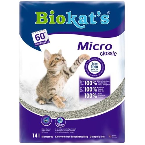 Pokud chcete podestýlku, která neobsahuje chemické přísady a je vysoce funkční, pak jste na správné adrese. Biokat´s Micro je hrudkující stelivo pro kočky všech druhů i velikostí a skvělé je na něm i to, že je bezprašné. Je vyrobeno z přírodního jílu a po styku s kapalinou tvoří pevné hrudky, úklid kočičí toalety se tak stane otázkou pár vteřin. Podestýlka si velmi dobře poradí i s nepříjemnými pachy, díky tomu ve vaší domácnosti nebude cítit kočičina.