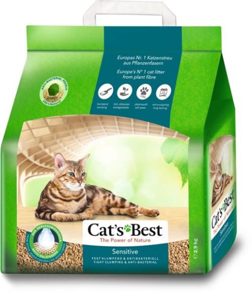 Silně hrudkující dřevitá podestýlka Cat's Best Sensitive je zvlášť vhodná pro kočky s citlivou pokožkou. Jemnozrnná dřevní hmota je šetrná ke kočičím tlapkám a doplněná zelenými perličkami s přirozeným antibakteriálním účinkem. Podestýlka má vynikající savost (absorbuje tekutinu až v osminásobku svého objemu) a díky tomu je úspornější než běžná steliva: v toaletě vydrží 6–8 týdnů bez nutnosti kompletní výměny. Vláknitý materiál skvěle pohlcuje pachy a má příjemnou vůni i bez umělých přísad. Steliva Cat‘s Best jsou plně biologicky odbouratelná, takže je můžete vyhodit i na kompost nebo spláchnout do záchodu (hrudky se po vhození do vody ihned rozpustí). Vyrábějí se z druhotných produktů dřevařské výroby v udržitelně obhospodařovaných lesích (certifikát PEFC), Hlavní přednosti podestýlky: