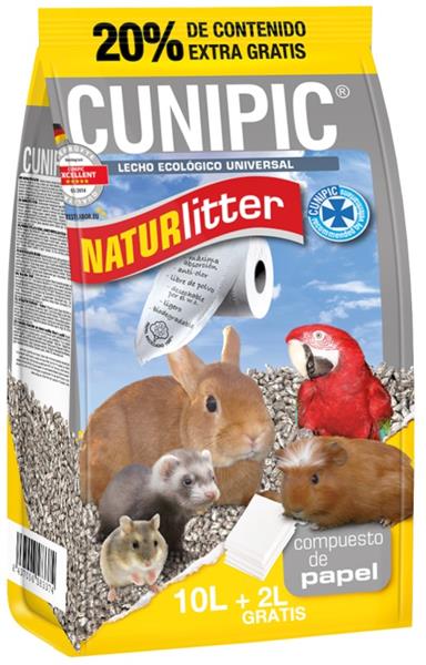 Podestýlka Cunipic Naturlitter je papírová podestýlka pro drobné savce a ptáky s vynikající savostí. Tvoří ji lisované pelety z bezprašného recyklovaného papíru.