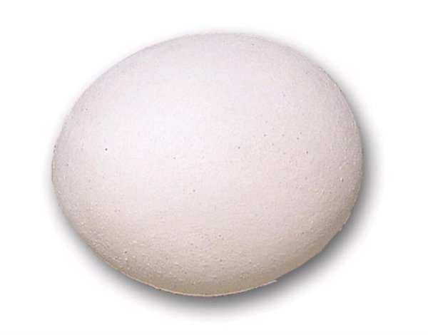 Umělé vejce z nepálené hlíny - podkladek pro slepice. Podkladky pod slepice se vkládají do snáškových hnízd (do kukaní), aby nosnice měla pocit, že snáší na místo, kde už nějaké vejce je a vytvořila si tak hnízdo, na kterém bude později sedět. Velikost: 6 x 4 cm.