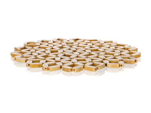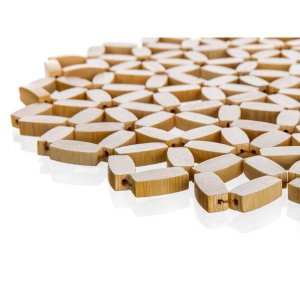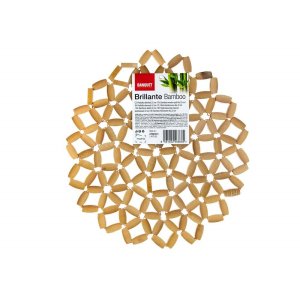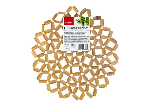Dřevěná podložka BRILLANTE Bamboo je vhodná pro použití v kuchyni nebo jako dekorace. Podložka je tvořena ručně skládanou mozaikou z bambusových obdelníčků o průměru 22 cm.
