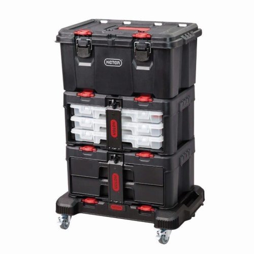 Mobilní podložka Keter Stack'N'Roll představuje praktické řešení pro vaši dílnu i garáž. Využijete ji jako samostatnou pracovní plochu nebo pojízdný základ pro produkty stejnojmenné modulární řady. S nosností až 100 kg bez problému zvládne i těžší přesuny.